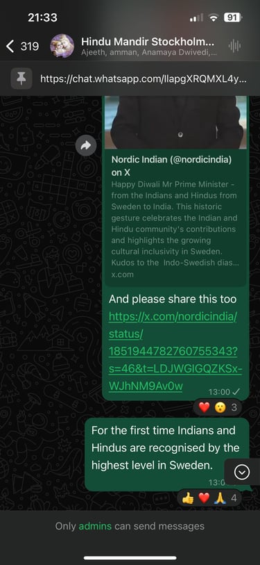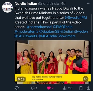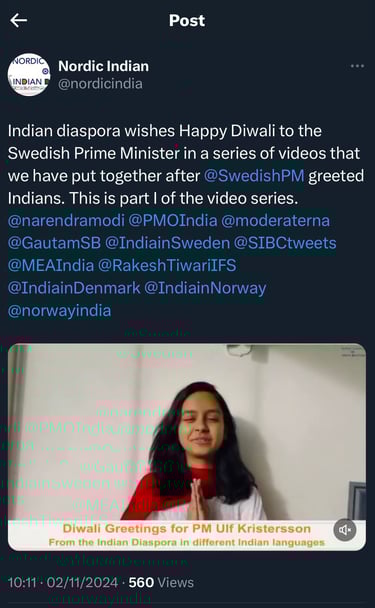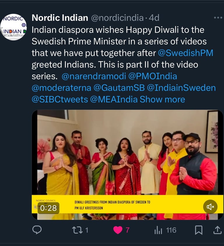 The final step was to encourage the Indian diaspora in Sweden to send a recorded return greetings to the Prime Minister.