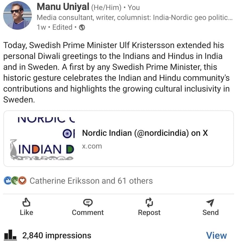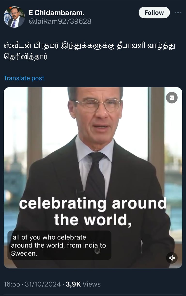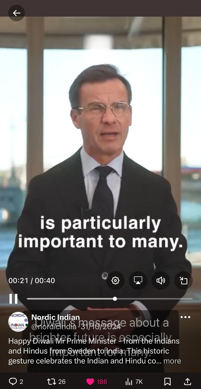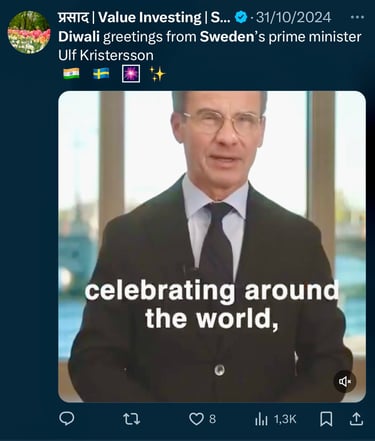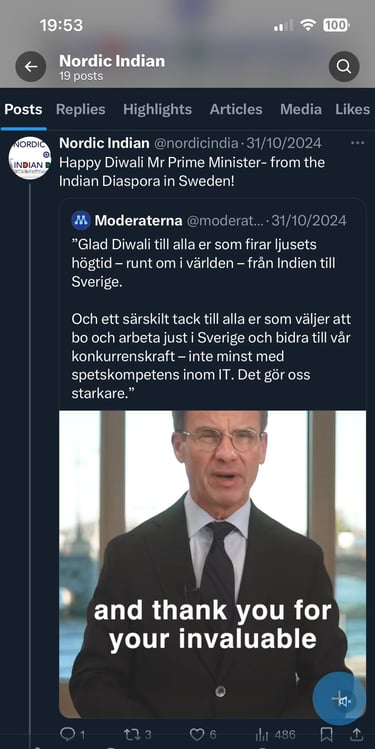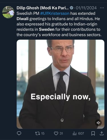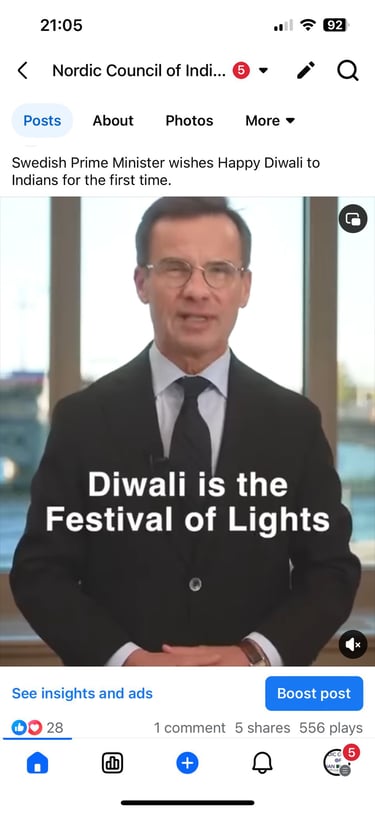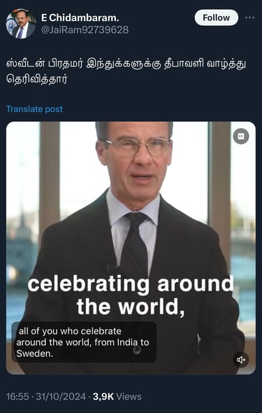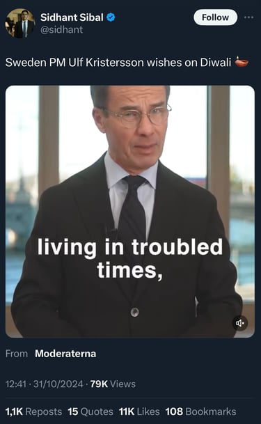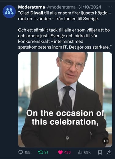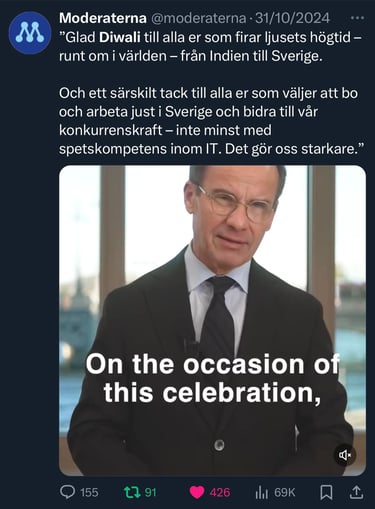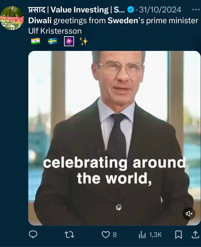 Swedish PM's Diwali Greetings