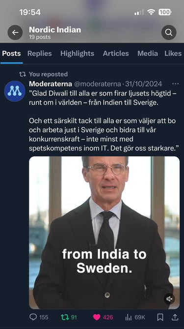 Reposting & Sharing: Spreading PM's message and the post made by the Moderates on X.